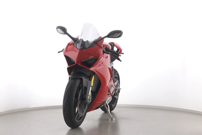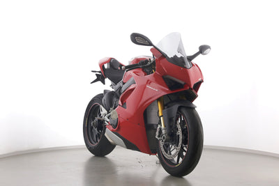 Eine scheckheftgepflegte Ducati Panigale V4 S in gepflegtem Zustand u.a. mit Carbonteile (Kennzeichenhalter und Puig-Scheibe.
