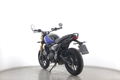 Eine Triumph Speed 400 in Topzustand u.a. mit Originalausstattung sowie Ganganzeige.