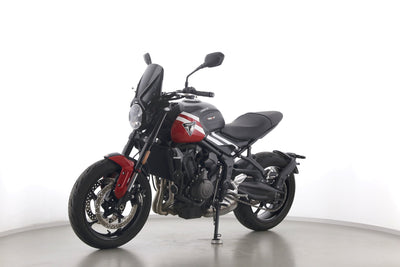 Wir bieten hier eine Triumph Trident 660. Alle unsere Fahrzeuge werden mit mindestens einem Jahr TÜV übergeben.